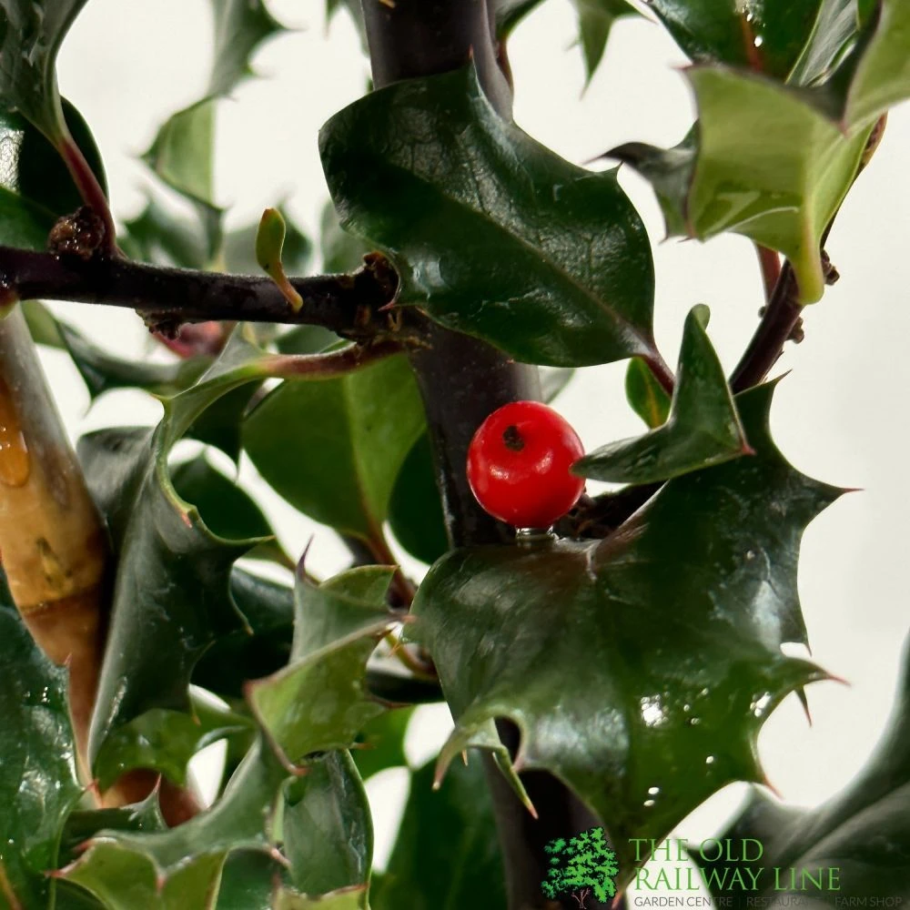 Ilex ? meserveae ‘Blue Angel’ Holly is a tall holly with dark spined foliage that carries a hint of blue, giving its common name of ‘blue angel’. It’s evergreen, giving year-round interest with a season of small white flowers during the summer, followed by a show of red berries during the autumn months.